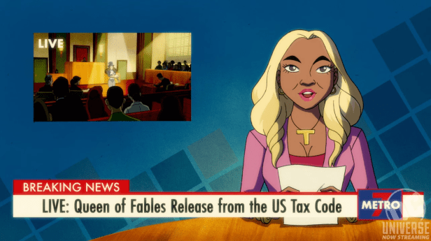 The Line continues Harley’s arc of desperately wanting to join the Legion of Doom, and this week she decides to take on a task that no other villain has been able to accomplish. She’s going to steal a weather machine. The Queen of Fables (played by Wanda Sykes) is released from her imprisonment inside a tax book and joins Harley’s crew over Poison Ivy’s arguments that it might be a bad idea. Harley is a villain, but the Queen of Fables? She’s a real bad guy. The kind that murders innocent people for the hell of it.