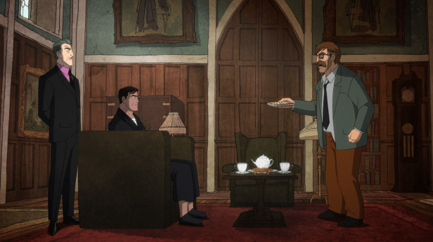 The B plot this episode revolves around Bane and Two Face as the only remaining supervillains and Bane’s struggle to get any sense of respect in the dwindling Injustice League. It’s a fine plot that just serves to continue the Batman-Ironman parody.