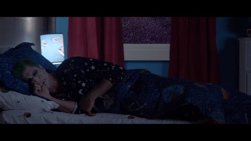 Luthor and Jokester are conspiring to kidnap Superbat’s son Lucas who is the only one in the family that doesn’t have superpowers. Superbat spills a beer on Tony Starch’s heart thing and he explodes and dies. Jokester shows up and hits everyone with his literal giggle stick which ironically is the first time Simon Rex has made anyone laugh since Scary Movie 3.