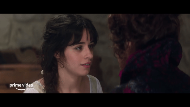 The story has been sanitized in this version even further. Cinderella’s stepsisters aren’t as evil as they are in previous iterations, nor is her stepmother. They openly acknowledge how beautiful Cabello is and none of them are people you’d kick out of bed for eating crackers either. Her stepmother’s motivation has been changed from just being an asshole to sabotage because she doesn’t want Cinderella to get her hopes up of prospering in a world dominated by men. The worst thing they do is ruin her dress and tell her her tea sucks. Otherwise they seem to give Cinderella free reign to use the basement to design dresses.