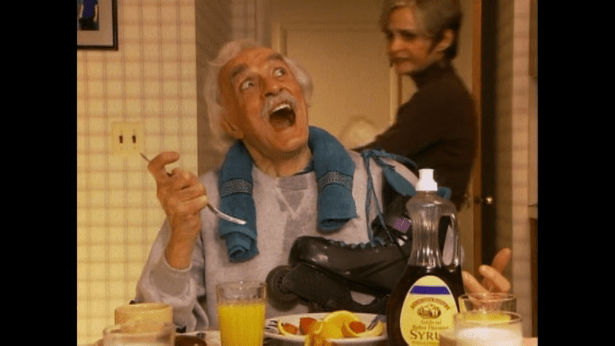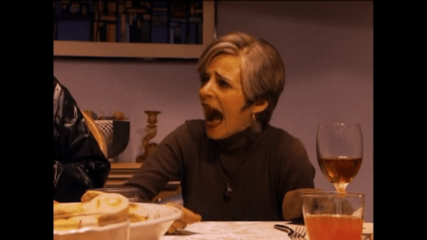 As we’ve established over the last six episodes in this discussion series, Strangers With Candy is a show that doesn’t take place in a normal world. Given that the episode is about eating disorders, we join the Blank family where everyone is dieting. Allegedly. Everyone except Jerri of course. Derrick is gloating about how if he loses a bit more weight he can wrestle fifth graders, and everyone’s plate is adorned with cuts of fruit despite the massive plate of pancakes in the center. The meat man Stew (yes that’s how they spell it) played by David Pasquesi is introduced as a new recurring character. Being toasty, he asks Sara Blank for a glass of water, to which he is given Jerri’s waffles. Jerri announces that she’s going to school early to try out for the debate club and nobody cares.