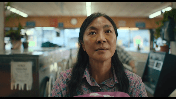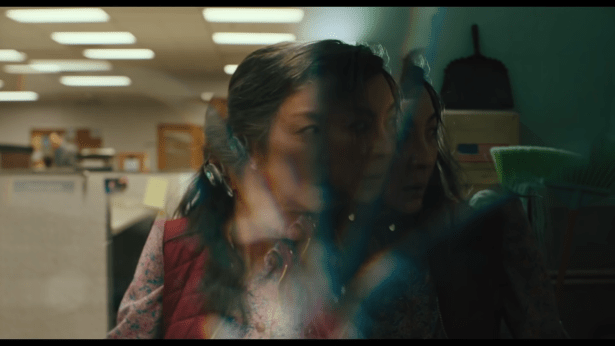 Evelyn Wang (Michelle Yeoh) is a aging Chinese woman who owns a laundromat in America. Life is hard; her marriage is falling apart, her husband Waymond (Ke Huy Quan) seems to be drifting away, and Evelyn doesn’t know what to do about her daughter Joy (Stephanie Hsu) and how to introduce to her father (James Hong) that Joy is in a lesbian relationship (Tallie Medel). The laundromat is falling apart, and after years of incorrectly filing her taxes Evelyn comes face to face with the ire of the Internal Revenue Services agent Dierdre (Jamie Lee Curtis).