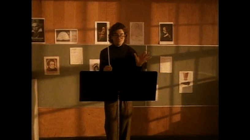 As we are still in season one, Strangers With Candy is pushing the overt parody of afterschool specials. In fact if you showed someone the opening thirty seconds or so from this episode, they probably would never know it was one of the filthiest shows on cable TV at the time. We kick off with Jerri playing drums in an orchestra only to get kicked out due to her being easily bored and playing out of line. Only a couple minutes in and already yet another classy “god damnit” scream from Jellineck, and the plot kicks into action. Noblet comes in to find Jellineck and is impressed when Jerri can seemingly play the violin, or the stringy paddle as she calls it, like a master with no prior training.
