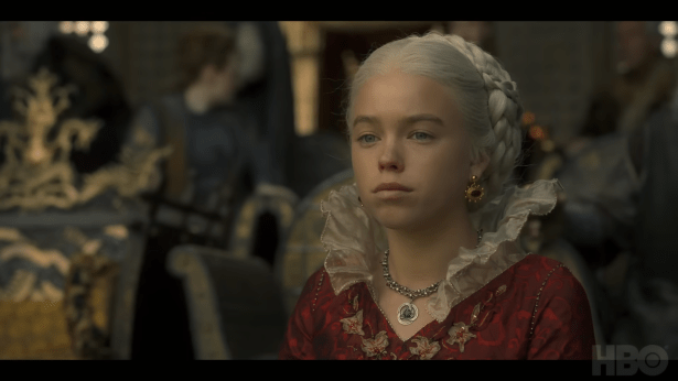 Our big villain for the series is clearly going to be Prince Daemon Targaryen, played by the venerable Matt Smith, who is denied his rightful place as king in waiting when Princess Rhaenyra Targaryen (Emma D’Arcy) is named as successor to spite him. I think Matt Smith is a good actor who happens to end up in a lot of complete shitass like Morbius or Terminator Genisys. He’s also really capable of being a menacing bad guy, the kind that skulks in the shadows while still being intimidating when drawn into the light. In short he’s kinda perfect for Game of Thrones even if that wig looks really stupid on him. You can really see this on display when, as his first act as commander of the watch, Daemon goes into the city and commands the guards to start butchering the criminal element. It’s brutal but as we learn the city has infamously fallen into lawlessness over the years, it’s basically exactly what is needed. Of course he screws it up and gets kicked out of the city for celebrating the death of the king’s son.
