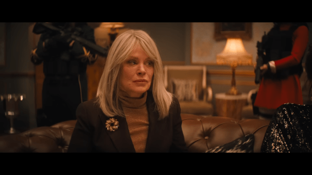 I’m actually happy to see Brendan Fletcher here as Krampus (code name), who does a fantastic job as playing something of the loose cannon psychopath in the group of mercs. You’ll recognize Fletcher if you’ve seen Uwe Boll’s old slate of movies because he’s in virtually all of them in some fashion. He hams up his performance and really steals the show whenever he has time to talk. Beverly D’Angelo has graduated from the wholesome mom of the National Lampoon movies to the cold heartless old bitch mother trope who abused her children and amassed a vast fortune via a life of screwing people over.