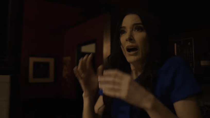 Anyway, Juliet’s role is to ignore the fact that she’s in a scary movie until she can’t ignore it anymore. The high paying job, the fact that the prior Hospice nurse happened to have to leave, the fact that this definitely alive and not suspicious old lady is suspiciously refusing to have her vitals taken. The thing that would prove she’s alive and totally not a demon or a zombie or a spoopy ghost. The lights keep flickering, a demon face appears on her phone, oh and a demon keeps walking around the house.