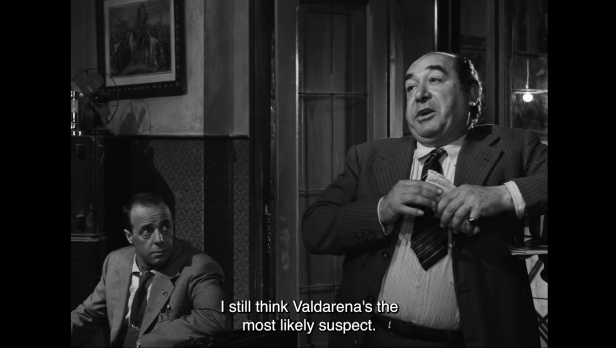 Being the director and star of the show, Ingravallo is of course the smartest man in the room, able to deduce pretty quickly people’s motivations and figure out what they’re likely to do next. He’s never shown as being infallible, especially when the chief calls into the office to tell him what a moron he and his team are, and his fellow detectives aren’t made into bumbling idiots for the sake of making him look smart.
