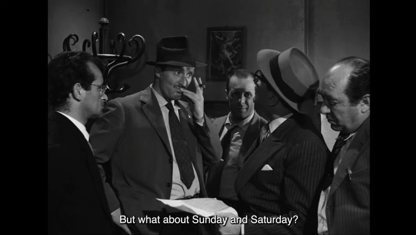 The Facts of Murder is a very entertaining movie, juggling two separate mysteries without letting one overstep the other. Germi as the inspector plays well on his fellow detectives including my personal favorite, Saro Urzì as Detective Saro, probably because he didn’t want to learn a new name. Incidentally Saro is the loudmouth constantly jabbering while deciding who is guilty, and also eating the country’s supply of sandwiches. And they are tasty looking sandwiches, I’ll give him that.