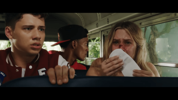 Ever’s goes on a school trip with her best friend Tamra (Ali Gallo) along with a cast of characters that are high school stereotypes. You have the typical jock Danny (Uriah Shelton) and Hunt (CJ LeBlanc), the girlfriend of the jock Jacey (Lo Graham), the bullied dweebs Randall (Benjamin Wadsworth) and Steven (Drew Scheid). And then there’s the brace face nerd Candace (Lucy Burvant), and some various other nerds like Zits (Tyler Galpin),m Slenderman (Angel Lia Spitale), Wagoner (Devin Stovall), and Band Kid (Dontez Williams). These characters are treated so poorly that the film left them uncredited.